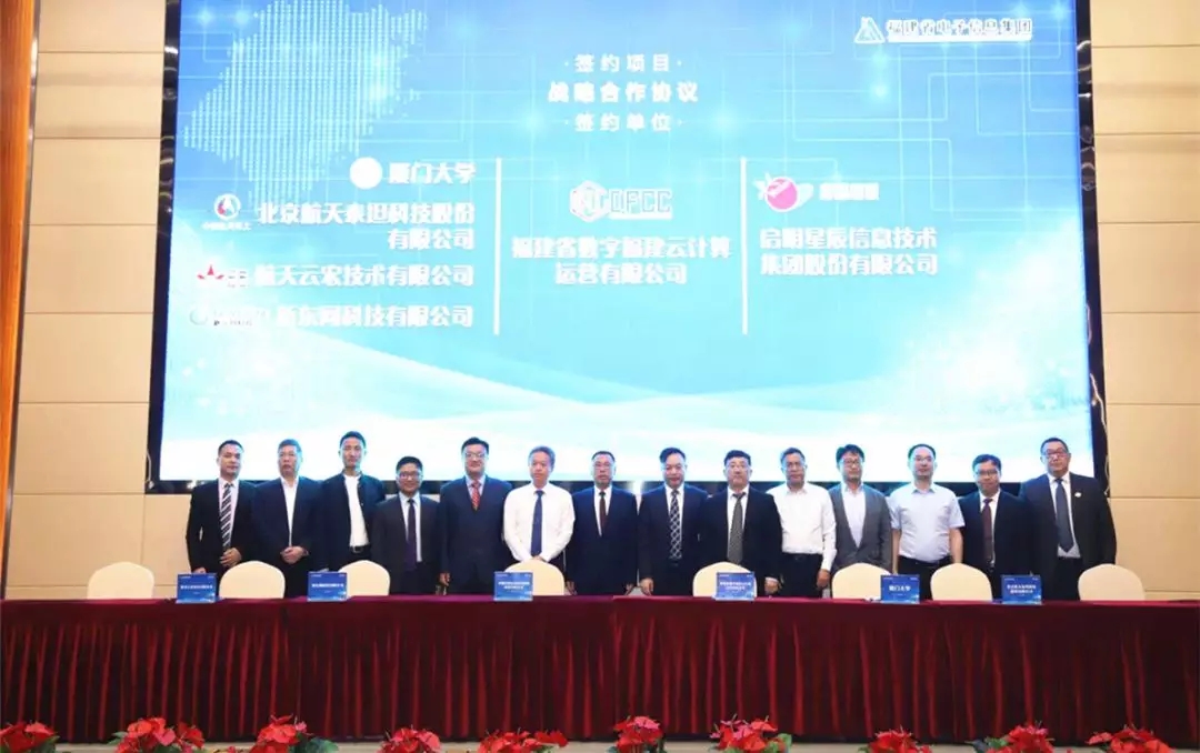 新東網科技有限公司與福建省電子信息集團下屬福建省數字福建云計算運營有限公司在此簽署了戰略合作協議,福建省數字福建云計算運營有限公司董事長高元榮,達華集團副總裁王中民,新東網科技有限公司董事長曾忠誠等出席簽約儀式。