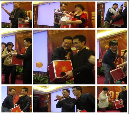 員工一入會場,立即收到前臺派發的壓歲33紅包和抽獎券,“33”寓意著新一年里大家都能步步高升,馬不停蹄!一段記錄新東網發展歷程的視頻拉開了晚會的序幕,來自華中區、華西區、華南區、華北區、海南省等各分子公司的祝福接踵而至。新東網的成長之路、奮斗歷程,一路十二年的風雨,點點滴滴,讓大家感觸頗深。
