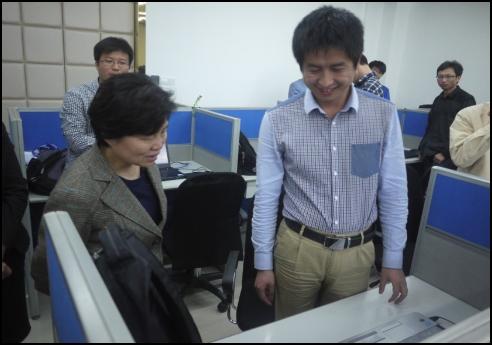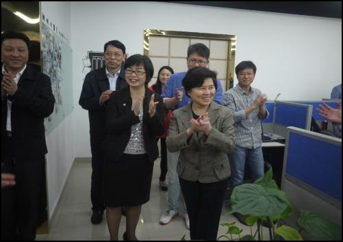 我司總裁特別助理曹禎向各位領導介紹了新東網的發展歷程、經營業績、業務體系等,陳樺書記充分肯定了我司各方面取得的成績。陳樺書記參觀了公司創新中心的辦公環境,并親切慰問工作中的研發人員,對于公司長期為有想法的大學生們助資、提供項目外包等方式扶持大學生們創業的做法,她表示十分贊賞:“剛畢業的大學生,充滿朝氣和拼搏勁兒,團結捆綁在一起,共同奮斗為生活,前途一片光明。”